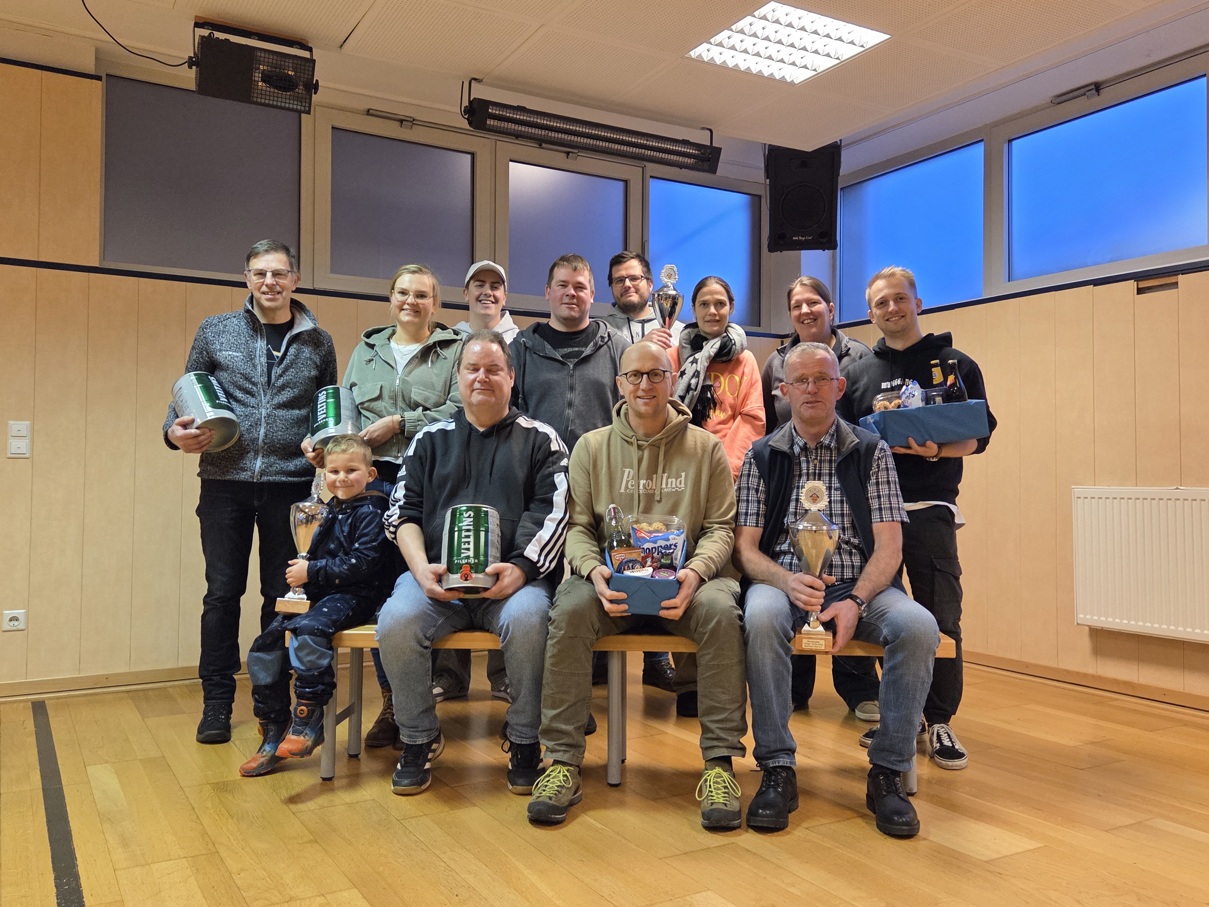 1. Platz der Kegelclub „Die Unbeweglichen“ mit Thorsten Hilbert, Mathias Ahmann und Reimund Beermann mit gesamt 298,9 Ringen